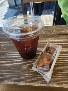 東岡崎駅についてまず、一つ目の聖地巡礼で”R COFFEE STAND”に行きました。ここは東海オンエアのメンバーりょうくんのお店で名前の通りコーヒーショップになります。また、季節のパウンドケーキも売っており、これがコーヒーと最高に合う食べ物となっておりました。コーヒー豆にもこだわっており、フルーティーな味のコーヒーが苦手なことを伝えるとおすすめのコーヒーを教えてくれて、確かに苦めでとてもおいしいコーヒーを飲むことができました。