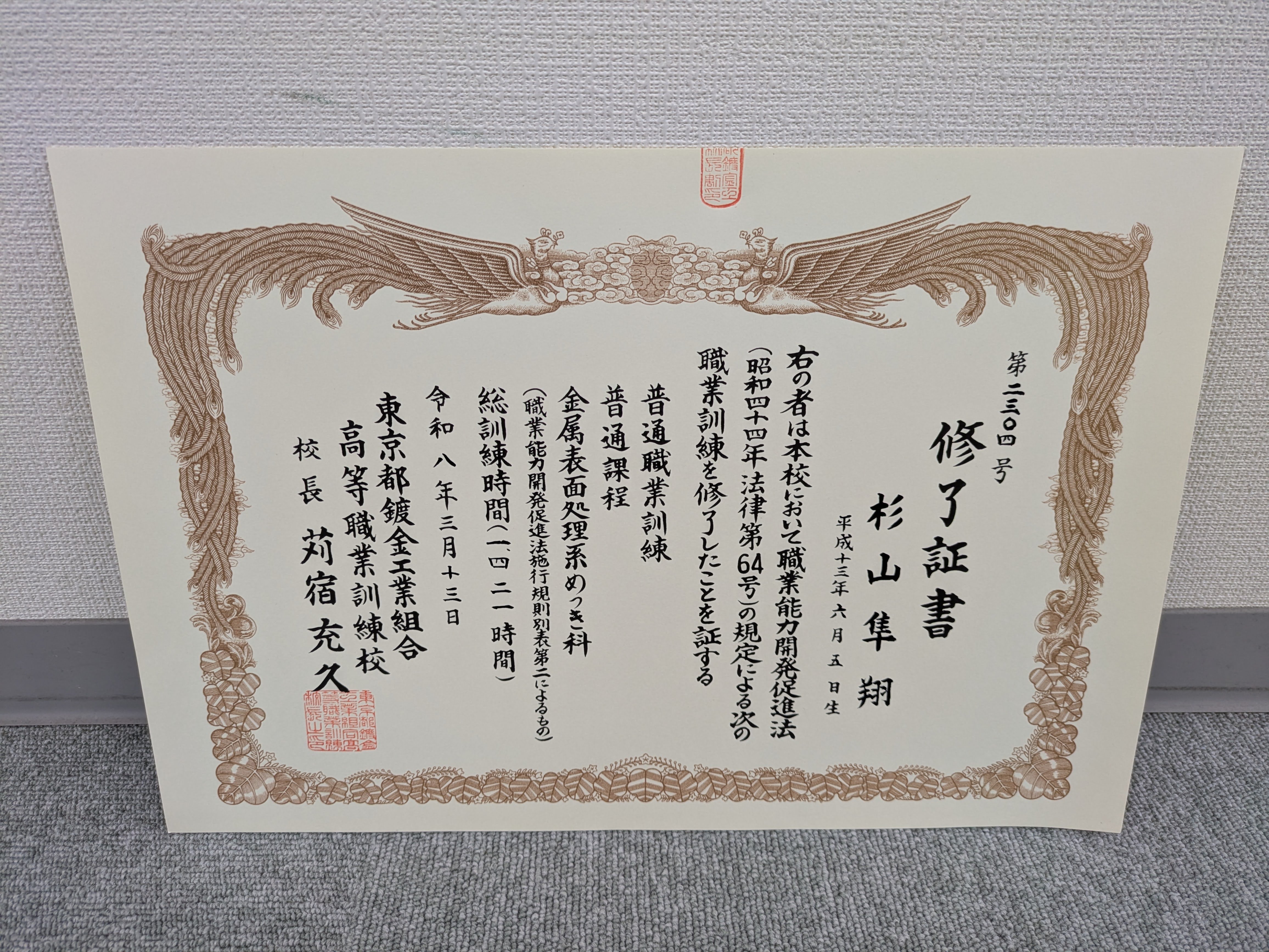先日、一年間通いました、東京都鍍金工業組合高等職業訓練校の修了式に出席してきました。この学校では、めっきについて座学と実技を交えながら学ぶことができます。